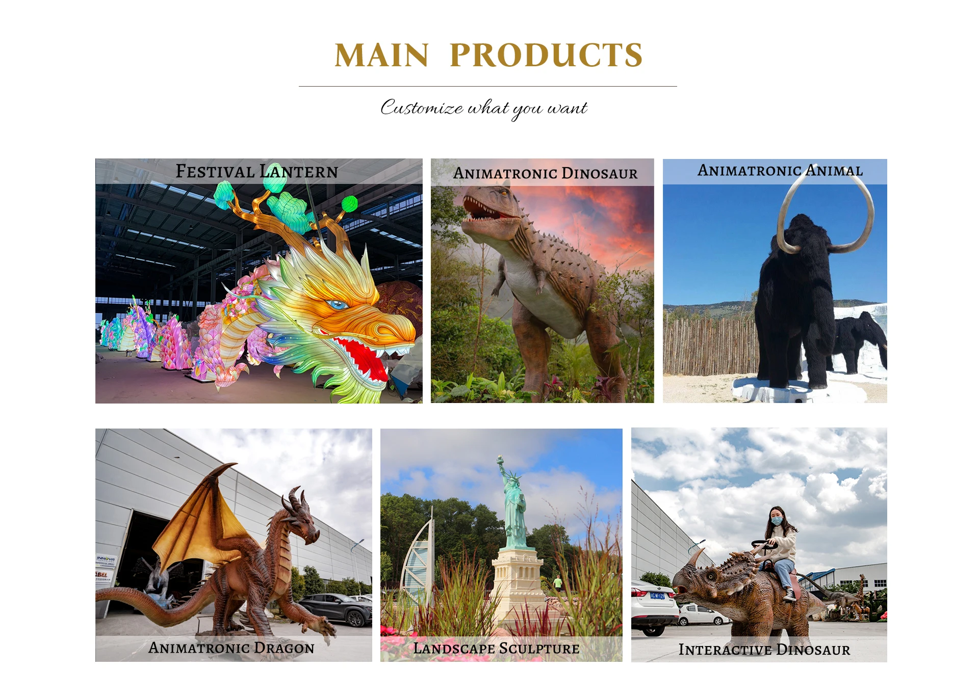 מוצרים עיקרייםאנימטרוני דינוזאור, פנס הפסטיבל, נוף מיניאטורי, בעל חיים, פסל פיברגלס